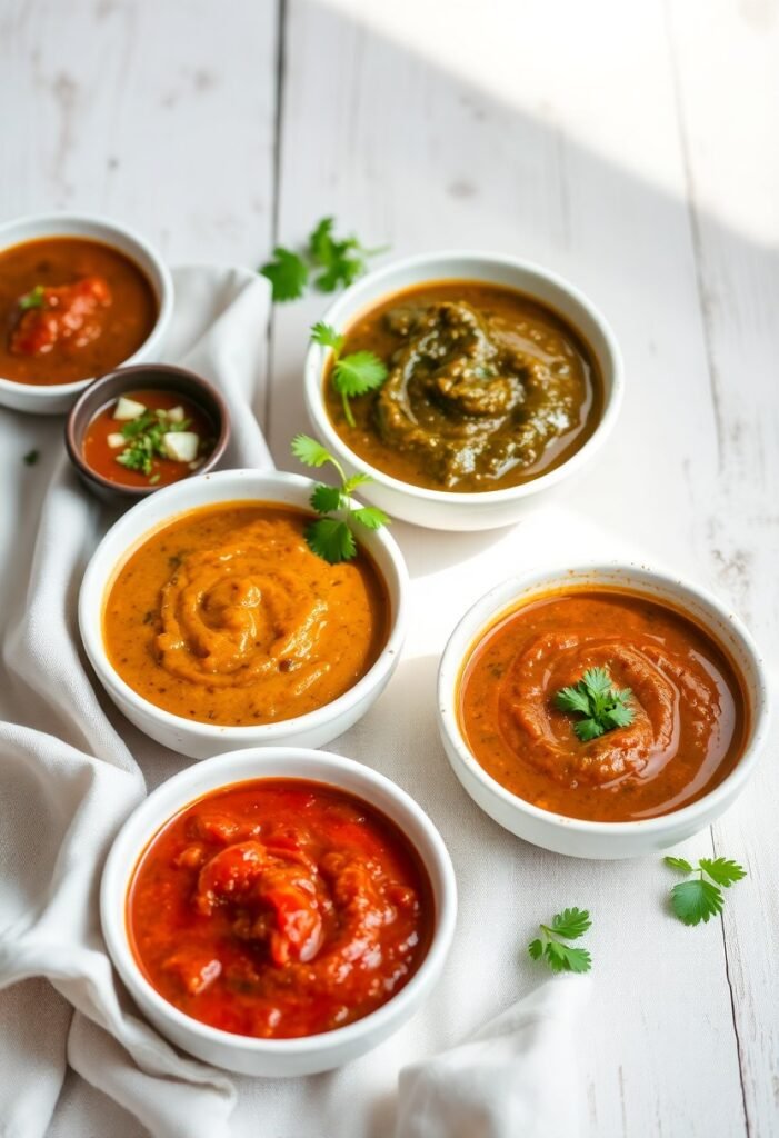 Tomato chutney? Tangy, slightly sweet, with a kick that lingers. And let’s not forget mint-coriander chutney—fresh, herby, and ridiculously versatile.