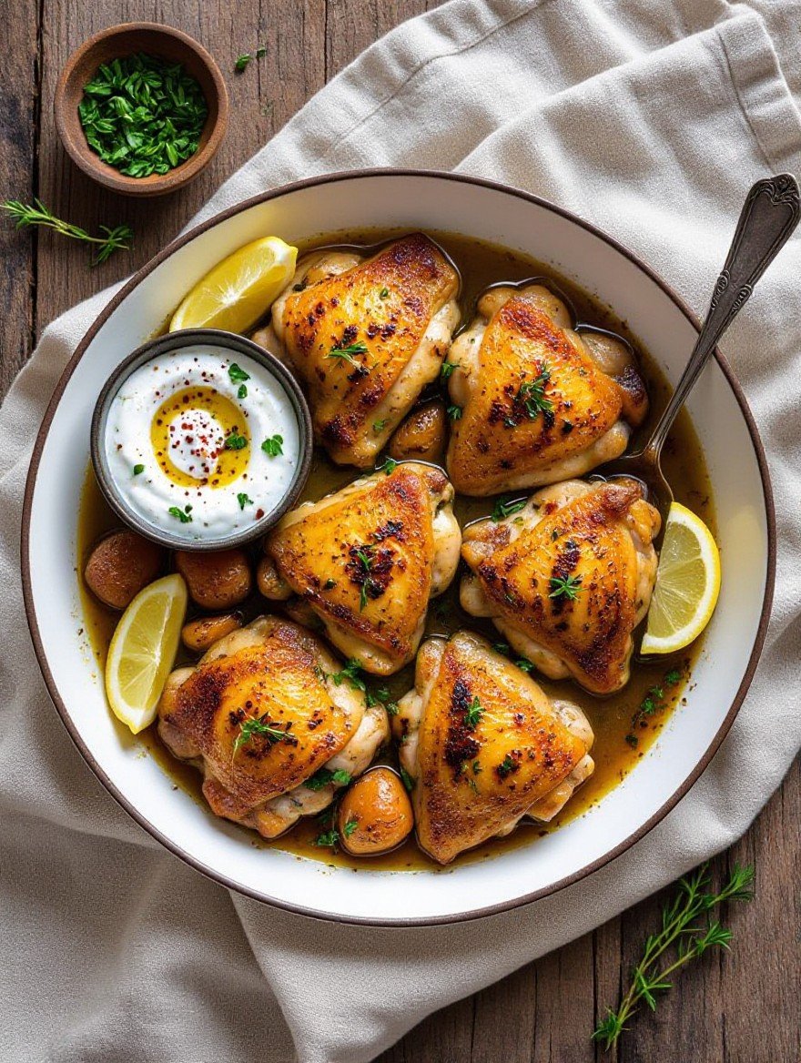 - 6 bone-in, skin-on chicken thighs (because dry chicken is a crime)